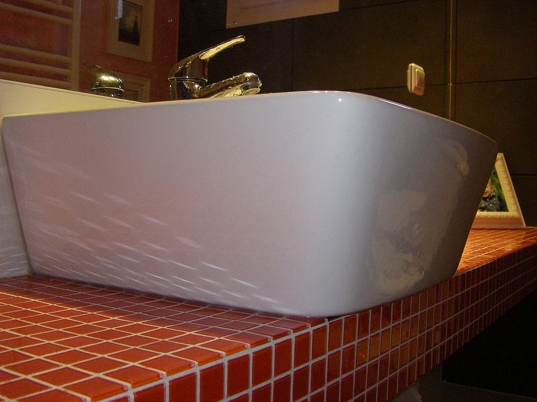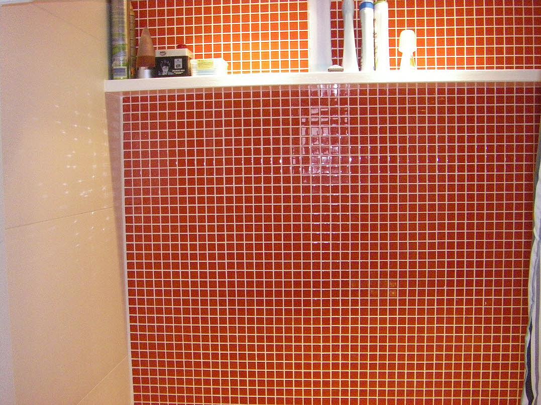 Γυάλινη ψηφίδα σε ντουζιέρα και χτιστό πάγκο